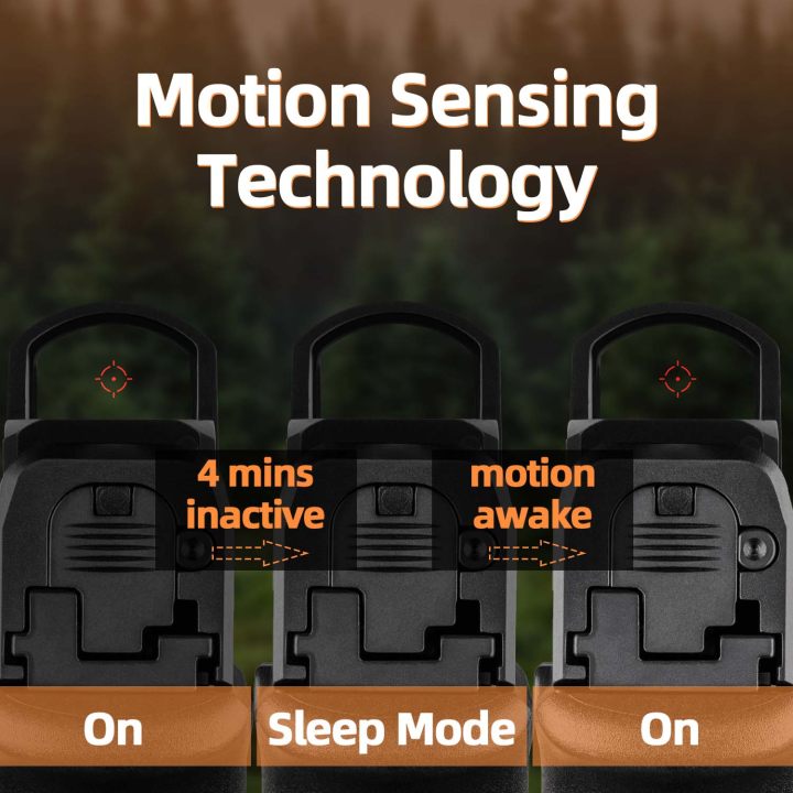 Red circle dot sight integrates with Shake Awake motion sensing illumination tech to help save battery life, a CR1632 battery can be used for up to 50,000 hours. After 4 minutes without motion, illumination shuts off, even the smallest tap or tilt will wake it up to the previous brightness setting.