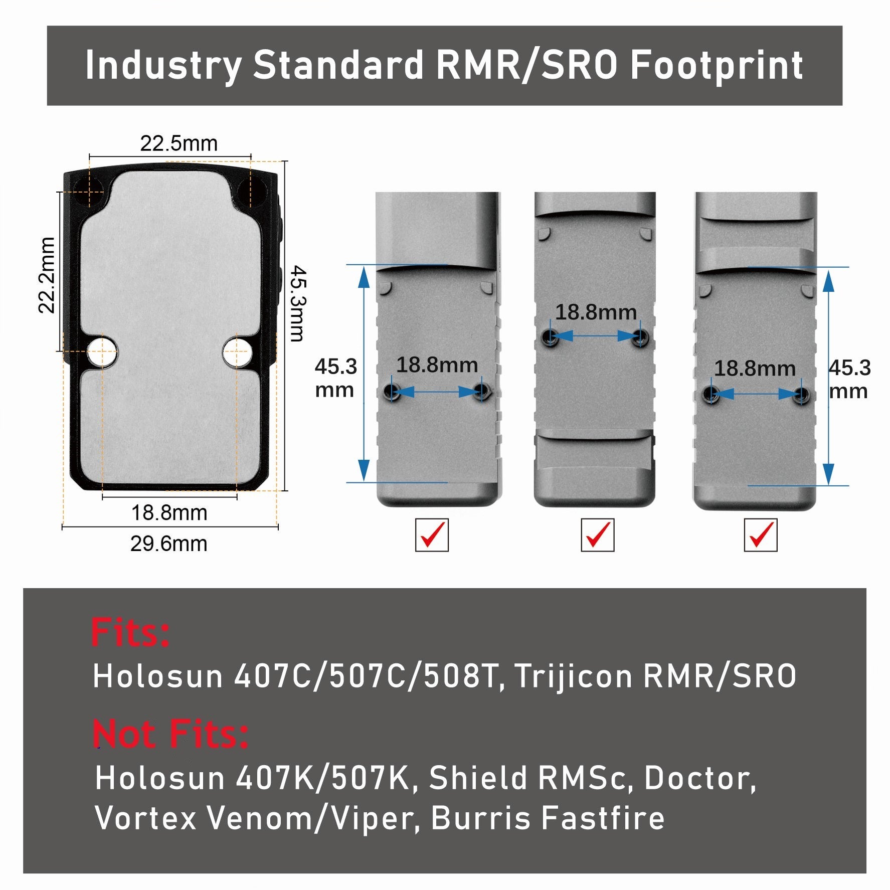 Industry Standard RMR/SRO Footprint & 1913 Picatinny Base.